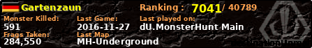 Gartenzaun | | PlayerID: | 27155 | | Overall MHT: | 284,550 | | Overall Deaths: | 83 | | Overall Suicides: | 0 | | Overall TeamKills: | 2 | | Overall Distance traveled: | 64km | | Overall Time Spend on Server: | 00days 06h 47m 52s | | Maps Played: | 48 | | Firstgame: | 2016-10-23 02:35:40 | | LastGame: | 2016-11-27 00:35:21 | | Player Ranking Place: | 7041 | | Used Playernames: | Gartenzaun