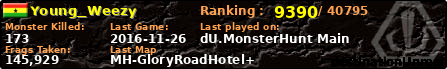 Young_Weezy | | PlayerID: | 27492 | | Overall MHT: | 145,929 | | Overall Deaths: | 79 | | Overall Suicides: | 0 | | Overall TeamKills: | 1 | | Overall Distance traveled: | 52km | | Overall Time Spend on Server: | 00days 05h 17m 27s | | Maps Played: | 19 | | Firstgame: | 2016-11-19 12:24:05 | | LastGame: | 2016-11-26 16:46:07 | | Player Ranking Place: | 9390 | | Used Playernames: | Young_Weezy