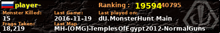 | Server | Map | LastGame | Score | Teamscore | Monsterleft | Deaths | Suicides | TKs | Distance | Playtime | |