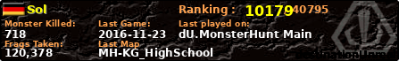 | Server | Map | LastGame | Score | Teamscore | Monsterleft | Deaths | Suicides | TKs | Distance | Playtime | |