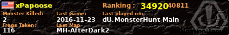 | Server | Map | LastGame | Score | Teamscore | Monsterleft | Deaths | Suicides | TKs | Distance | Playtime | |