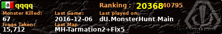 | Server | Map | LastGame | Score | Teamscore | Monsterleft | Deaths | Suicides | TKs | Distance | Playtime | |