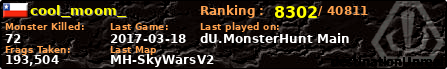 | Server | Map | LastGame | Score | Teamscore | Monsterleft | Deaths | Suicides | TKs | Distance | Playtime | |