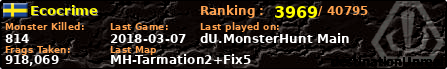 Ecocrime | | PlayerID: | 28411 | | Overall MHT: | 918,069 | | Overall Deaths: | 95 | | Overall Suicides: | 0 | | Overall TeamKills: | 2 | | Overall Distance traveled: | 78km | | Overall Time Spend on Server: | 00days 06h 31m 18s | | Maps Played: | 31 | | Firstgame: | 2017-01-16 16:13:54 | | LastGame: | 2018-03-07 21:18:17 | | Player Ranking Place: | 3969 | | Used Playernames: | Ecocrime