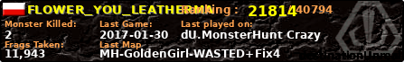 | Server | Map | LastGame | Score | Teamscore | Monsterleft | Deaths | Suicides | TKs | Distance | Playtime | |