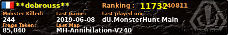 | Server | Map | LastGame | Score | Teamscore | Monsterleft | Deaths | Suicides | TKs | Distance | Playtime | |