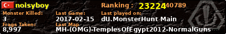 | Server | Map | LastGame | Score | Teamscore | Monsterleft | Deaths | Suicides | TKs | Distance | Playtime | |