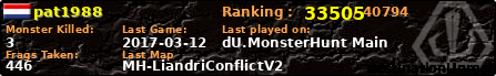 | Server | Map | LastGame | Score | Teamscore | Monsterleft | Deaths | Suicides | TKs | Distance | Playtime | |
