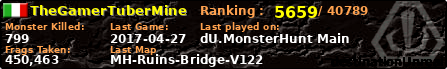 TheGamerTuberMine | | PlayerID: | 29292 | | Overall MHT: | 450,463 | | Overall Deaths: | 50 | | Overall Suicides: | 0 | | Overall TeamKills: | 0 | | Overall Distance traveled: | 79km | | Overall Time Spend on Server: | 00days 06h 48m 03s | | Maps Played: | 17 | | Firstgame: | 2017-04-02 18:12:24 | | LastGame: | 2017-04-27 17:41:27 | | Player Ranking Place: | 5659 | | Used Playernames: | TheGamerTuberMine