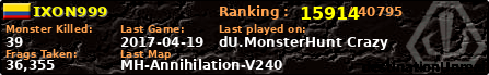 | Server | Map | LastGame | Score | Teamscore | Monsterleft | Deaths | Suicides | TKs | Distance | Playtime | |