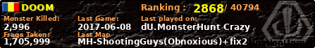 | MH-Doomed-HELL-HTD+ | 2017-06-07 22:24:42 | 381,928 | 268785 | 10 | 0 | 0 | 0 | 3,50km | 00:28:55 | |