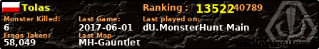 | Server | Map | LastGame | Score | Teamscore | Monsterleft | Deaths | Suicides | TKs | Distance | Playtime | |