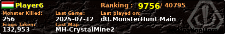 | Server | Map | LastGame | Score | Teamscore | Monsterleft | Deaths | Suicides | TKs | Distance | Playtime | |