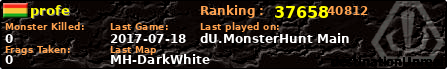 | Server | Map | LastGame | Score | Teamscore | Monsterleft | Deaths | Suicides | TKs | Distance | Playtime | |