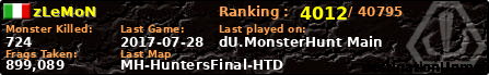 | Server | Map | LastGame | Score | Teamscore | Monsterleft | Deaths | Suicides | TKs | Distance | Playtime | |