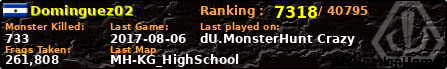 | Server | Map | LastGame | Score | Teamscore | Monsterleft | Deaths | Suicides | TKs | Distance | Playtime | |