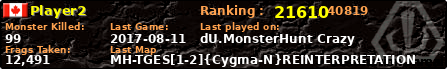 | Server | Map | LastGame | Score | Teamscore | Monsterleft | Deaths | Suicides | TKs | Distance | Playtime | |