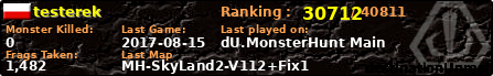 | Server | Map | LastGame | Score | Teamscore | Monsterleft | Deaths | Suicides | TKs | Distance | Playtime | |