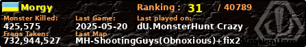 Morgy | | PlayerID: | 30756 | | Overall MHT: | 732,944,527 | | Overall Deaths: | 7233 | | Overall Suicides: | 1234 | | Overall TeamKills: | 36 | | Overall Distance traveled: | 11,611km | | Overall Time Spend on Server: | 53days 11h 25m 34s | | Maps Played: | 3701 | | Firstgame: | 2017-09-06 10:48:07 | | LastGame: | 2025-05-20 23:39:40 | | Player Ranking Place: | 31 | | Used Playernames: | Morgy Morgy<3Morgy MORGANA MORGANA_UA MORGANA_FREEMAN