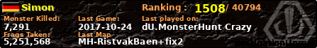 Simon | | PlayerID: | 30814 | | Overall MHT: | 5,251,568 | | Overall Deaths: | 31 | | Overall Suicides: | 0 | | Overall TeamKills: | 0 | | Overall Distance traveled: | 96km | | Overall Time Spend on Server: | 00days 08h 23m 43s | | Maps Played: | 33 | | Firstgame: | 2017-09-14 16:53:01 | | LastGame: | 2017-10-24 19:49:51 | | Player Ranking Place: | 1508 | | Used Playernames: | Simon