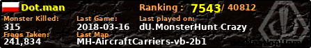 | Server | Map | LastGame | Score | Teamscore | Monsterleft | Deaths | Suicides | TKs | Distance | Playtime | |