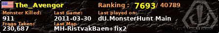 The_Avengor | | PlayerID: | 3137 | | Overall MHT: | 230,687 | | Overall Deaths: | 305 | | Overall Suicides: | 0 | | Overall TeamKills: | 1 | | Overall Distance traveled: | 120km | | Overall Time Spend on Server: | 00days 12h 19m 53s | | Maps Played: | 24 | | Firstgame: | 2011-02-19 08:19:25 | | LastGame: | 2011-03-30 06:03:46 | | Player Ranking Place: | 7693 | | Used Playernames: | The_Avengor