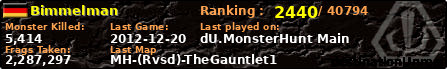 Bimmelman | | PlayerID: | 3138 | | Overall MHT: | 2,287,297 | | Overall Deaths: | 291 | | Overall Suicides: | 15 | | Overall TeamKills: | 1 | | Overall Distance traveled: | 195km | | Overall Time Spend on Server: | 00days 17h 10m 12s | | Maps Played: | 53 | | Firstgame: | 2011-02-19 08:19:25 | | LastGame: | 2012-12-20 11:31:26 | | Player Ranking Place: | 2440 | | Used Playernames: | Bimmelman Loll SumpfGrasRaucher