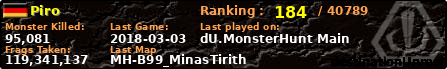 Piro | | PlayerID: | 31560 | | Overall MHT: | 119,341,137 | | Overall Deaths: | 2808 | | Overall Suicides: | 27 | | Overall TeamKills: | 75 | | Overall Distance traveled: | 4,364km | | Overall Time Spend on Server: | 18days 20h 33m 05s | | Maps Played: | 1105 | | Firstgame: | 2017-12-01 13:27:49 | | LastGame: | 2018-03-03 00:21:18 | | Player Ranking Place: | 184 | | Used Playernames: | Piro
