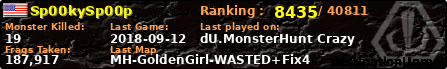 | Server | Map | LastGame | Score | Teamscore | Monsterleft | Deaths | Suicides | TKs | Distance | Playtime | |