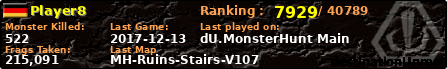 Player8 | | PlayerID: | 31652 | | Overall MHT: | 215,091 | | Overall Deaths: | 45 | | Overall Suicides: | 0 | | Overall TeamKills: | 0 | | Overall Distance traveled: | 42km | | Overall Time Spend on Server: | 00days 06h 25m 33s | | Maps Played: | 27 | | Firstgame: | 2017-12-10 15:16:19 | | LastGame: | 2017-12-13 12:56:46 | | Player Ranking Place: | 7929 | | Used Playernames: | Player8