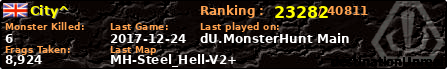 | Server | Map | LastGame | Score | Teamscore | Monsterleft | Deaths | Suicides | TKs | Distance | Playtime | |