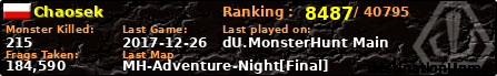 | Server | Map | LastGame | Score | Teamscore | Monsterleft | Deaths | Suicides | TKs | Distance | Playtime | |