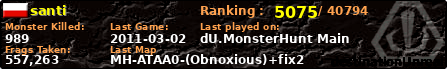 santi | | PlayerID: | 3202 | | Overall MHT: | 557,263 | | Overall Deaths: | 59 | | Overall Suicides: | 0 | | Overall TeamKills: | 0 | | Overall Distance traveled: | 72km | | Overall Time Spend on Server: | 00days 06h 16m 08s | | Maps Played: | 23 | | Firstgame: | 2011-02-21 11:54:44 | | LastGame: | 2011-03-02 08:48:31 | | Player Ranking Place: | 5075 | | Used Playernames: | santi