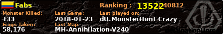 | Server | Map | LastGame | Score | Teamscore | Monsterleft | Deaths | Suicides | TKs | Distance | Playtime | |