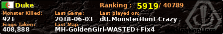 | Server | Map | LastGame | Score | Teamscore | Monsterleft | Deaths | Suicides | TKs | Distance | Playtime | |