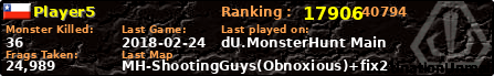 | Server | Map | LastGame | Score | Teamscore | Monsterleft | Deaths | Suicides | TKs | Distance | Playtime | |