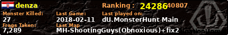 | Server | Map | LastGame | Score | Teamscore | Monsterleft | Deaths | Suicides | TKs | Distance | Playtime | |