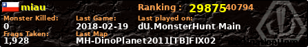 | Server | Map | LastGame | Score | Teamscore | Monsterleft | Deaths | Suicides | TKs | Distance | Playtime | |