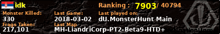 | Server | Map | LastGame | Score | Teamscore | Monsterleft | Deaths | Suicides | TKs | Distance | Playtime | |