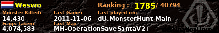 Weswo | | PlayerID: | 3277 | | Overall MHT: | 4,074,583 | | Overall Deaths: | 2575 | | Overall Suicides: | 21 | | Overall TeamKills: | 15 | | Overall Distance traveled: | 1,076km | | Overall Time Spend on Server: | 03days 10h 18m 41s | | Maps Played: | 328 | | Firstgame: | 2011-02-26 20:03:23 | | LastGame: | 2011-11-06 18:56:14 | | Player Ranking Place: | 1785 | | Used Playernames: | Weswo skaaj_soldier_dave koe$$$$$$$$$$$$$$$$$