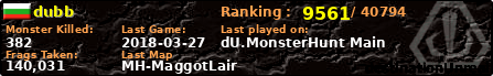 | Server | Map | LastGame | Score | Teamscore | Monsterleft | Deaths | Suicides | TKs | Distance | Playtime | |