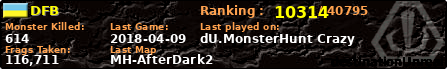 | Server | Map | LastGame | Score | Teamscore | Monsterleft | Deaths | Suicides | TKs | Distance | Playtime | |