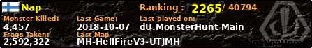 Nap | | PlayerID: | 33126 | | Overall MHT: | 2,592,322 | | Overall Deaths: | 514 | | Overall Suicides: | 2 | | Overall TeamKills: | 7 | | Overall Distance traveled: | 421km | | Overall Time Spend on Server: | 01days 06h 32m 26s | | Maps Played: | 172 | | Firstgame: | 2018-04-17 19:07:29 | | LastGame: | 2018-10-07 21:03:06 | | Player Ranking Place: | 2265 | | Used Playernames: | Nap