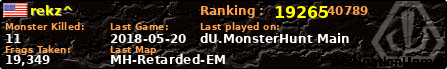 | Server | Map | LastGame | Score | Teamscore | Monsterleft | Deaths | Suicides | TKs | Distance | Playtime | |