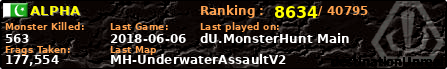 | Server | Map | LastGame | Score | Teamscore | Monsterleft | Deaths | Suicides | TKs | Distance | Playtime | |
