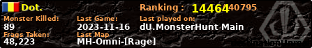 | Server | Map | LastGame | Score | Teamscore | Monsterleft | Deaths | Suicides | TKs | Distance | Playtime | |