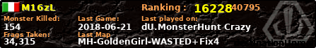 | MH-!wDx!Elitez-[v1] | 2018-06-21 10:41:50 | 11,643 | 840988 | 30 | 1 | 0 | 0 | 1,51km | 00:14:43 | |
