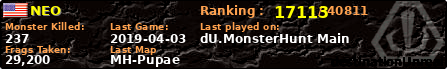 | Server | Map | LastGame | Score | Teamscore | Monsterleft | Deaths | Suicides | TKs | Distance | Playtime | |