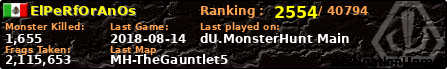 ElPeRfOrAnOs | | PlayerID: | 33726 | | Overall MHT: | 2,115,653 | | Overall Deaths: | 31 | | Overall Suicides: | 0 | | Overall TeamKills: | 0 | | Overall Distance traveled: | 94km | | Overall Time Spend on Server: | 00days 10h 35m 14s | | Maps Played: | 36 | | Firstgame: | 2018-07-11 02:48:19 | | LastGame: | 2018-08-14 01:10:04 | | Player Ranking Place: | 2554 | | Used Playernames: | ElPeRfOrAnOs ElVeRgAtIeZA