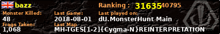 | Server | Map | LastGame | Score | Teamscore | Monsterleft | Deaths | Suicides | TKs | Distance | Playtime | |